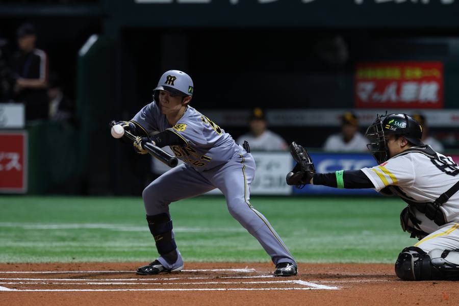 中野が絶妙なバントヒットでチャンスを拡大。1・2番コンビで絶好のチャンスを作る。